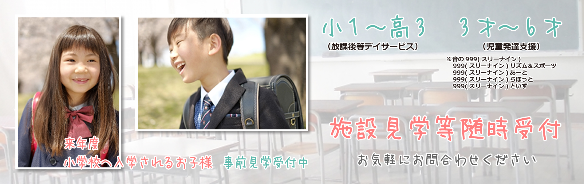 999(スリーナイン)では療育が必要な子供達が放課後をのびのびと過ごす場所を提供致します。
