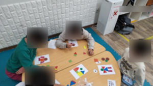 指示した形と合うパーツをさがす構成訓練やビジョントレーニングを行います。