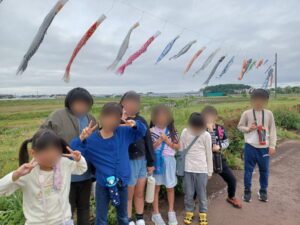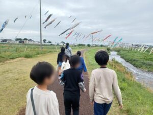 思っていたよりも多くのこいのぼりがあり、大きさや模様が様々で子どもたちも「あのこいのぼり大きい!」と興味津々で見学していました!