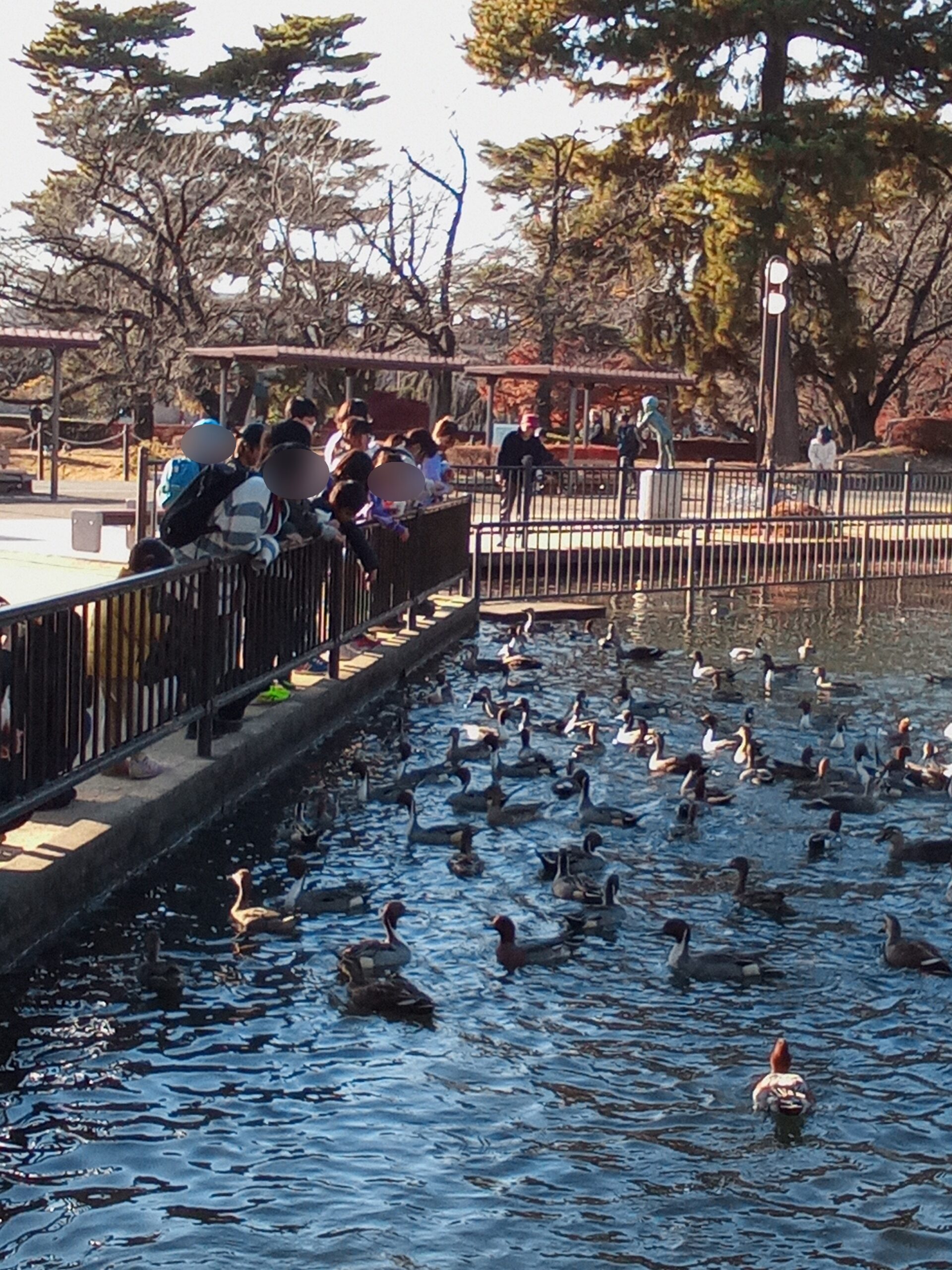 鯉だけだと思ったら…!池にはカモやアヒルもいて子どもたちもびっくりしながら餌をあげていました😂