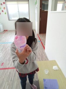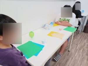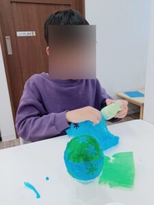 濡らしたお花紙を風船に何層にも重ねて貼り付けるので、じっくり時間をかけて集中して行う制作活動でしたが、