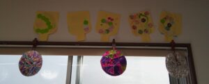 またグループ活動では丸い折り紙と画用紙を使って羽子板制作も行いました❕❕