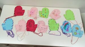 次に画用紙の周りに穴を開けて毛糸を通す手袋制作を行いました~❕🧤💖