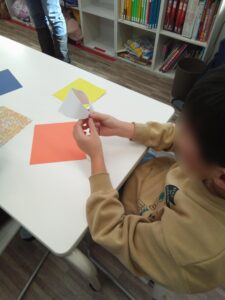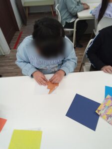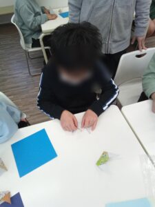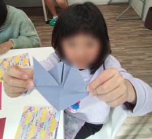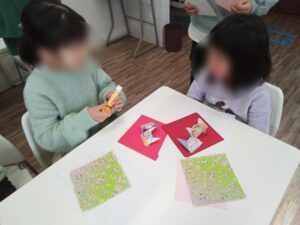 細かいところで「ここどうやるの~?」「むずかしい!」という子どももいましたがみんな一生懸命折ることができ、「見てみて~」と見せてくれる児童もいました!✨✨
