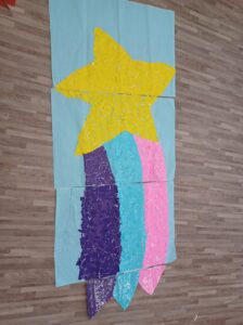流れ星のちぎり絵は何日もかけてみんなで作った大作です!