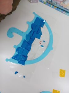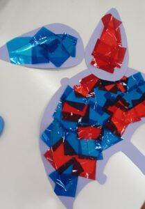 色が重なると別の色味が出てきますね!小さくセロファンを切って顔を作ってみるのも個性があって可愛いです🩷