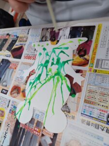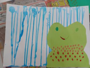 カエルの制作は絵具が上手く流れるようにたくさんストローで吹きました!