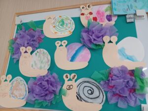 カレンダーにははじき絵のカタツムリ🐌アジサイと一緒に飾りました!