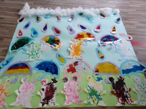 こちらは絵具を垂らして雨にしました!絵具だけでも色んな表現方法がありますね