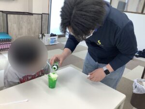 子どもたちは自分の好きな色、好きな味に作ることができて大喜びでした👌