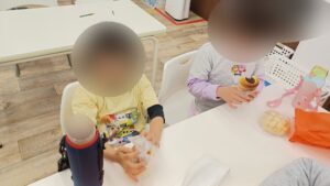 パンを乗せたら最後はお会計💰お釣りを考えながらお金を投入したり、レジ袋を店員さんに頼んだり、それぞれ自分で考えながらお買い物をすることができました‼
