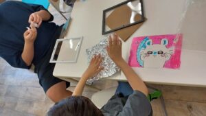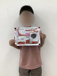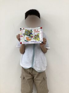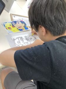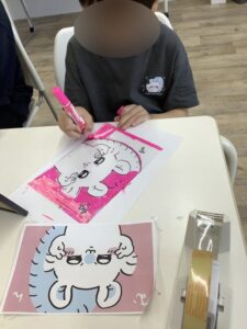 その後に印刷した絵を透明な板の下に敷いて、ペンで線をなぞったり色を塗ったりしていきました💫