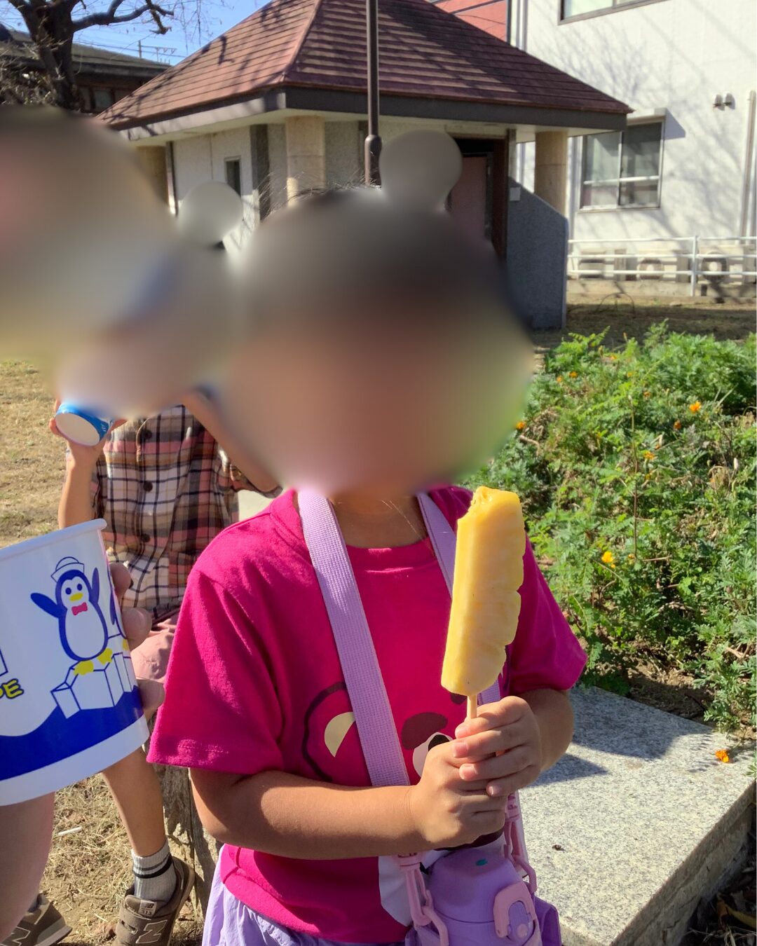食べ物を買った子は、公園でおやつタイムを取りました😋