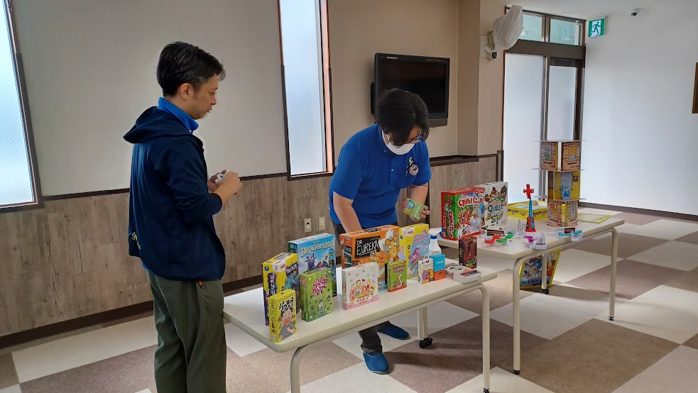 今回は「BIGキャプテンリノ」と「ナンジャモンジャ」のチームと「くるりんパニック」と「VSウイルス」のチーム、「宝石ゴンゴン」と「ドラゴミノ」のチームに分かれて行いました!