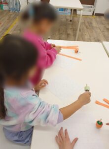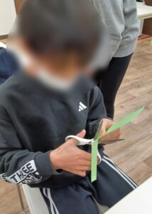 最初は、ハサミで画用紙を切ります✂