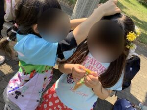 タンポポを髪の毛につけて遊ぶ女の子チームです💛