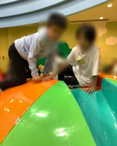 プレイルームでは大きな滑り台やトランポリンで遊びました!