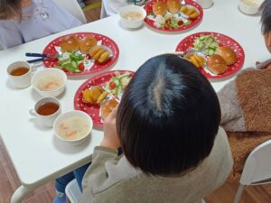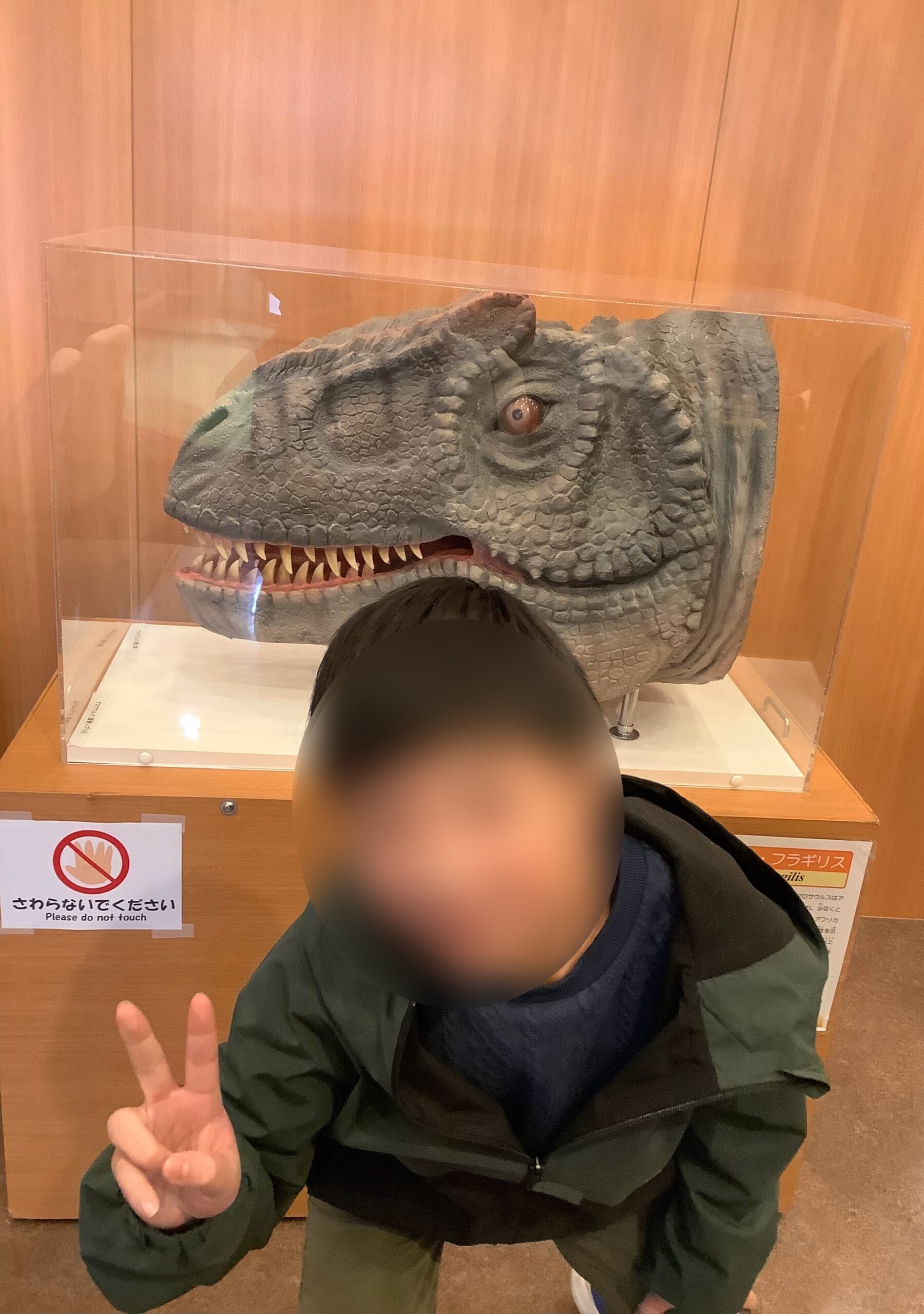 少し怖いと言っていた子も、かわいい恐竜のサウルスくんを見て笑顔で楽しんでいました☺🦖