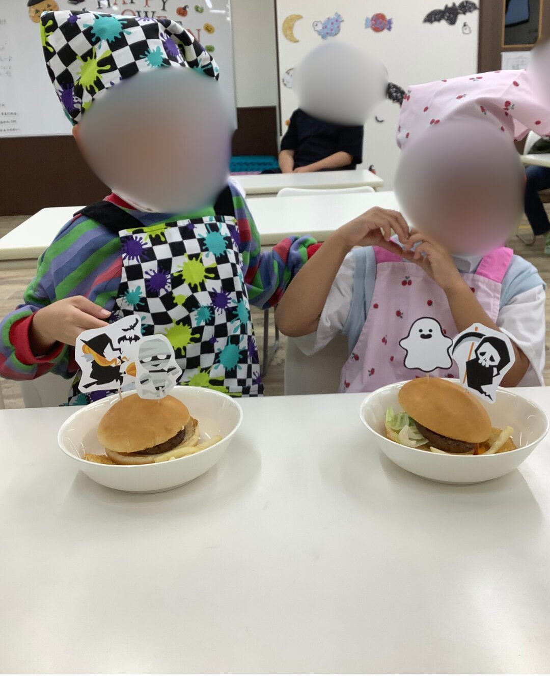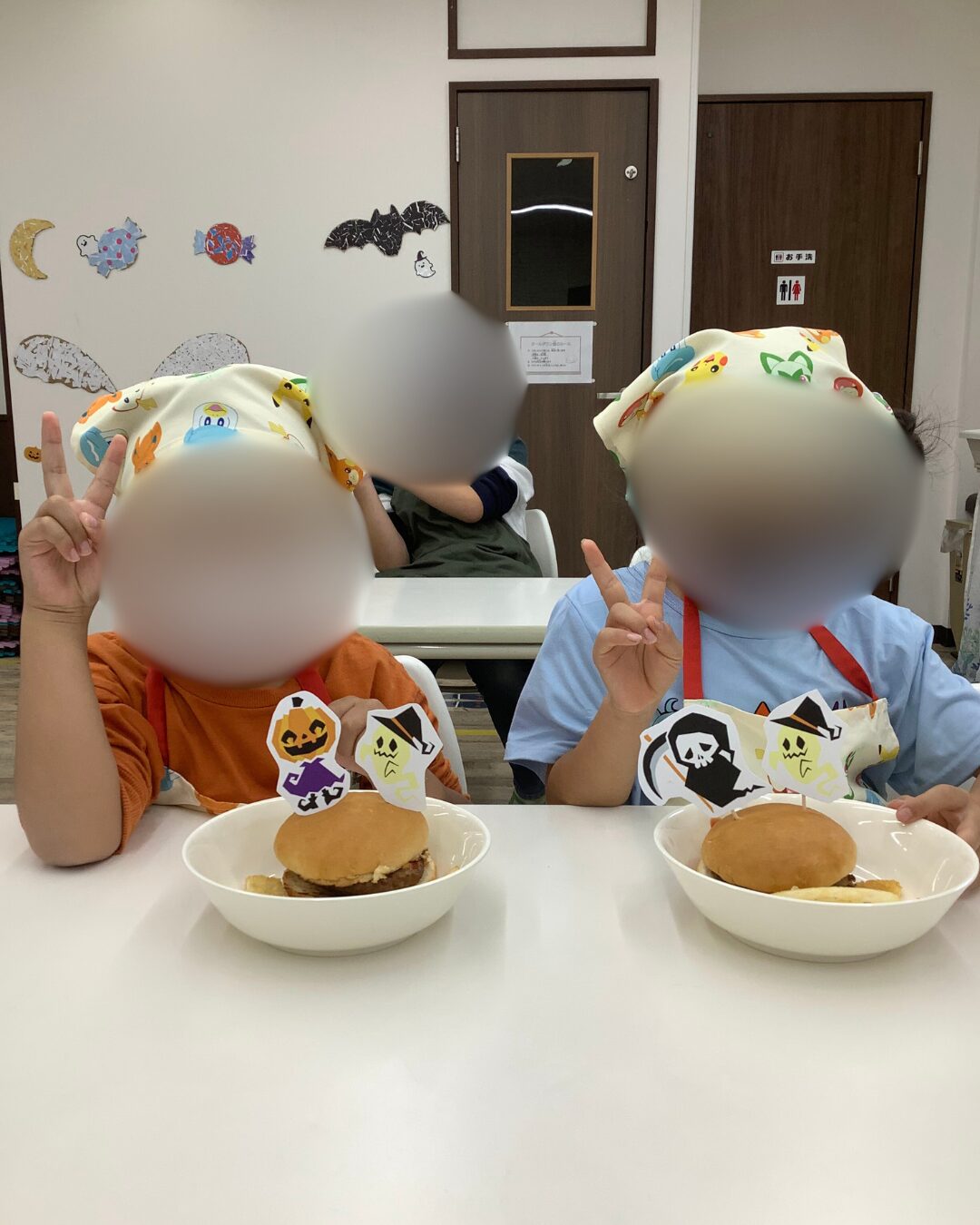 午前中の活動は食育のハロウィンハンバーガー作り🍔