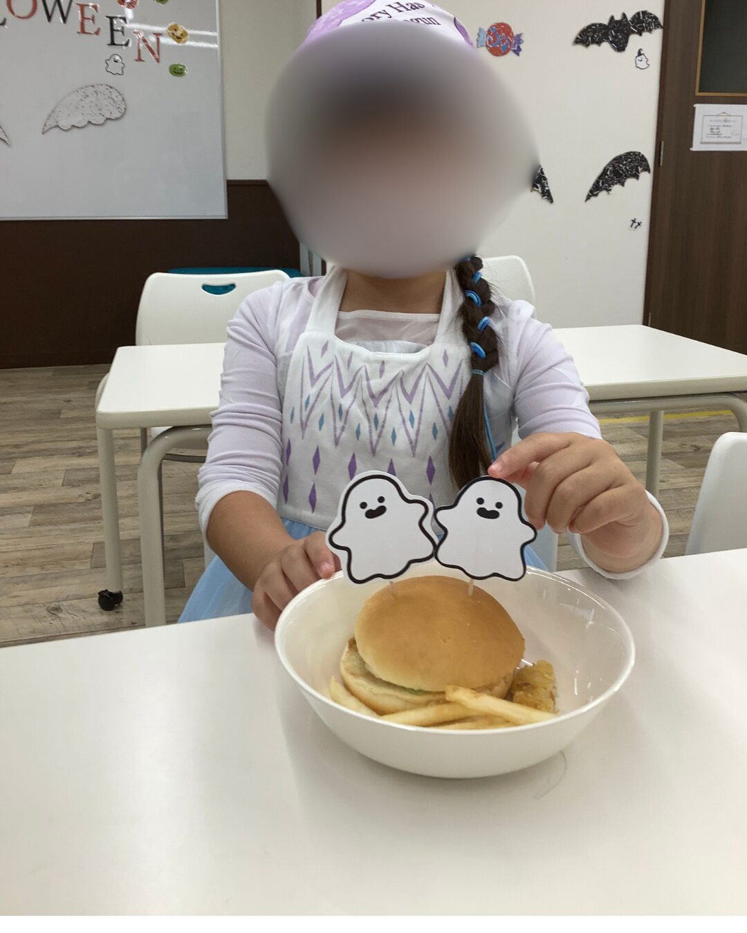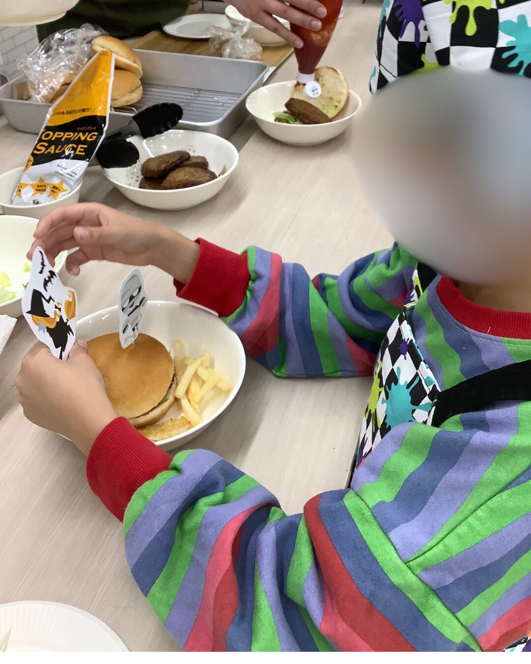 自分だけのオリジナルハロウィンハンバーガー🍔「これ、すごいおいしい😊」とみんなペロリと完食してました!