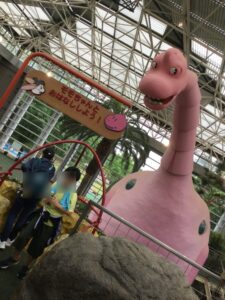 次にこどもの城に移動し、大きな恐竜のモモちゃんとおしゃべりしたり、しっぽの滑り台や砂場で遊んだり楽しく過ごしました!