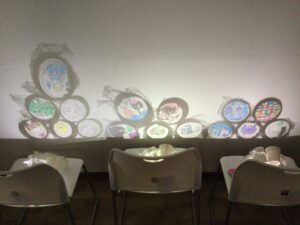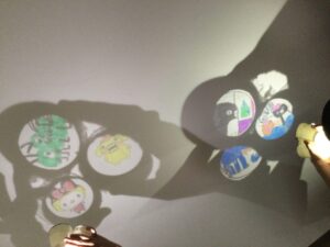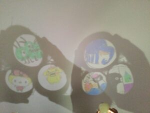 ライトで照らしてイラストを壁にうつして遊びました😊🔦
