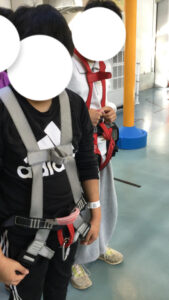 始めに遊び方の動画を見て、その後にスタッフさんにハーネスを取り付けてもらいます!