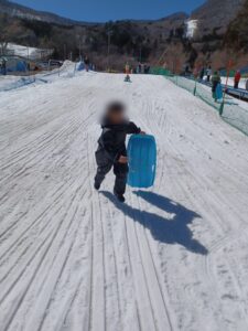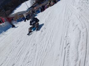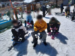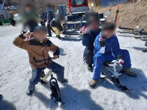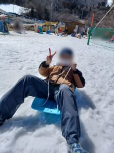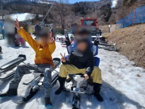 初めてスキーを体験する子も最初は緊張している様子でしたが、2人乗りソリに職員やお友達と乗ることで徐々に慣れていき楽しく滑ることが出来ました。