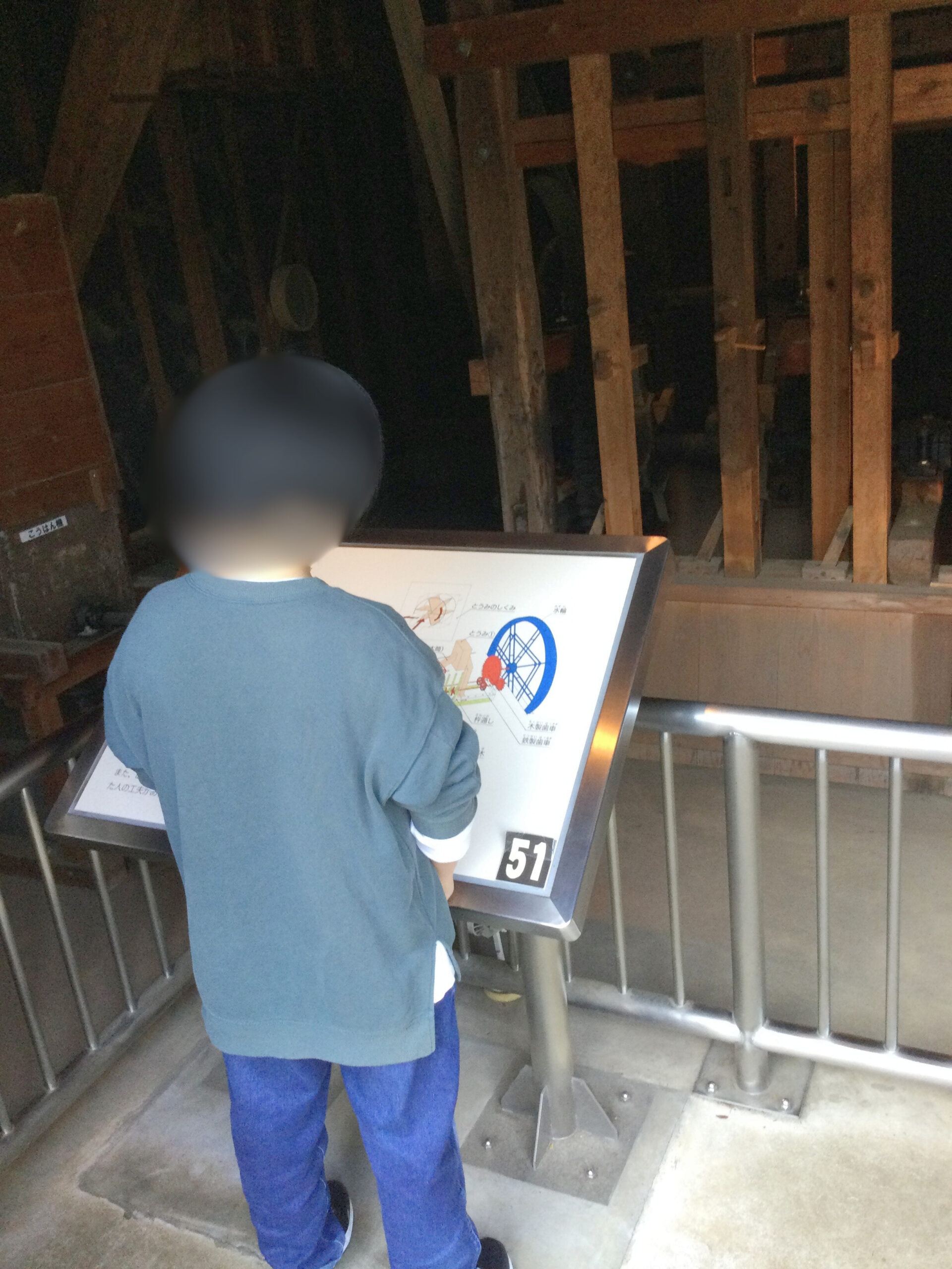 水車を使った昔の道具🤔仕組みを真剣に見ています