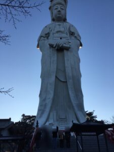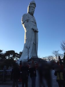 大きな観音様を「大きいね」「すごい」と見上げていると、