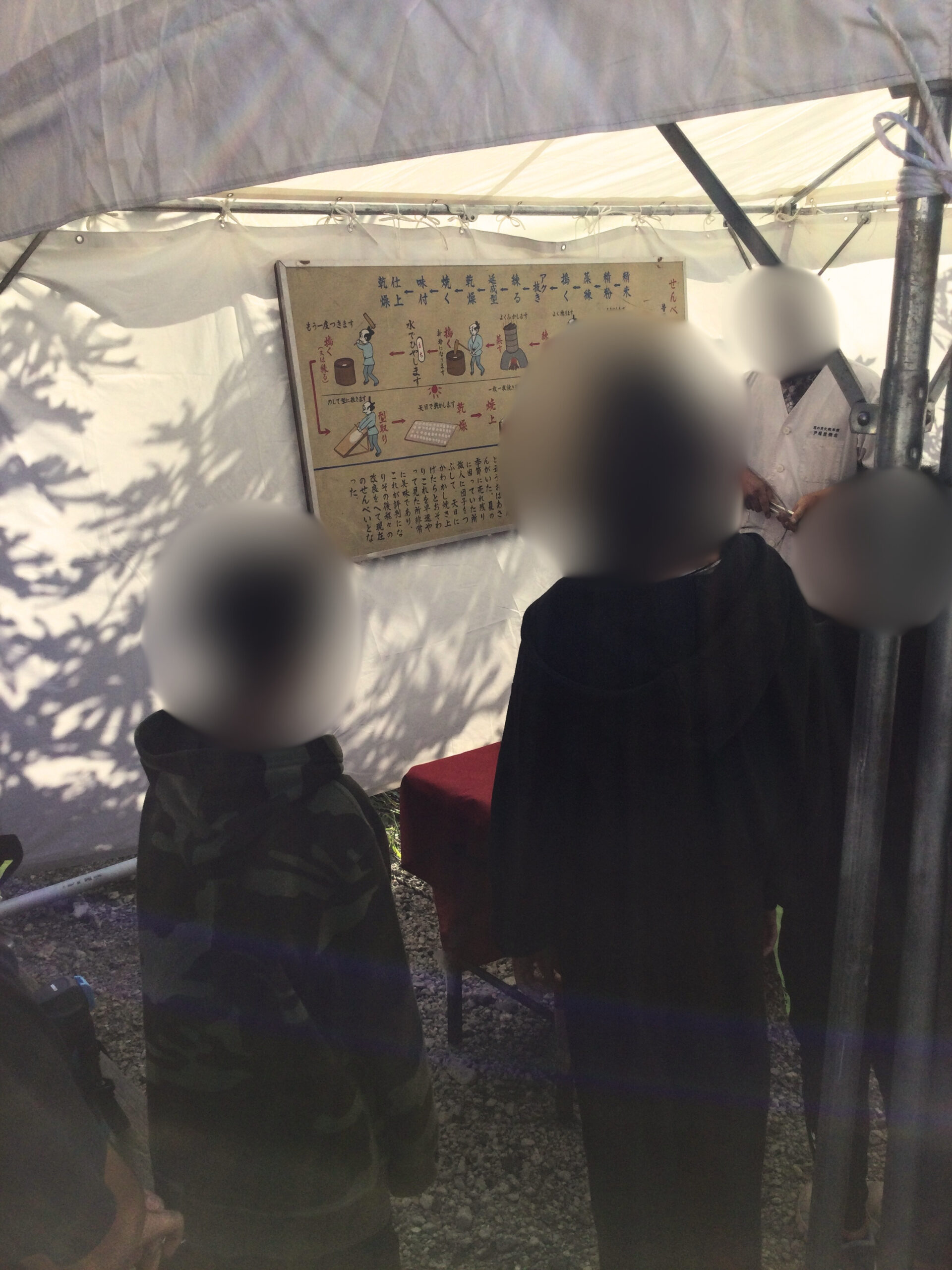 まずはお店の人に、おせんべいがどうやってできているかを教えてもらいました。