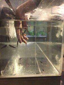 手をよく洗い、ドキドキしながら手を水槽の中へ…