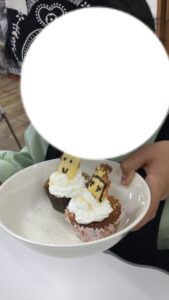クリームを盛り付けてお顔のクッキーを乗せて完成‼