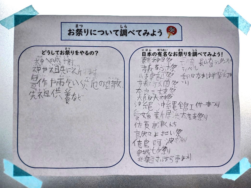午前中の活動でお祭りについて調べました!