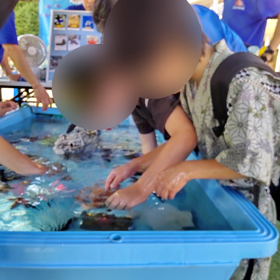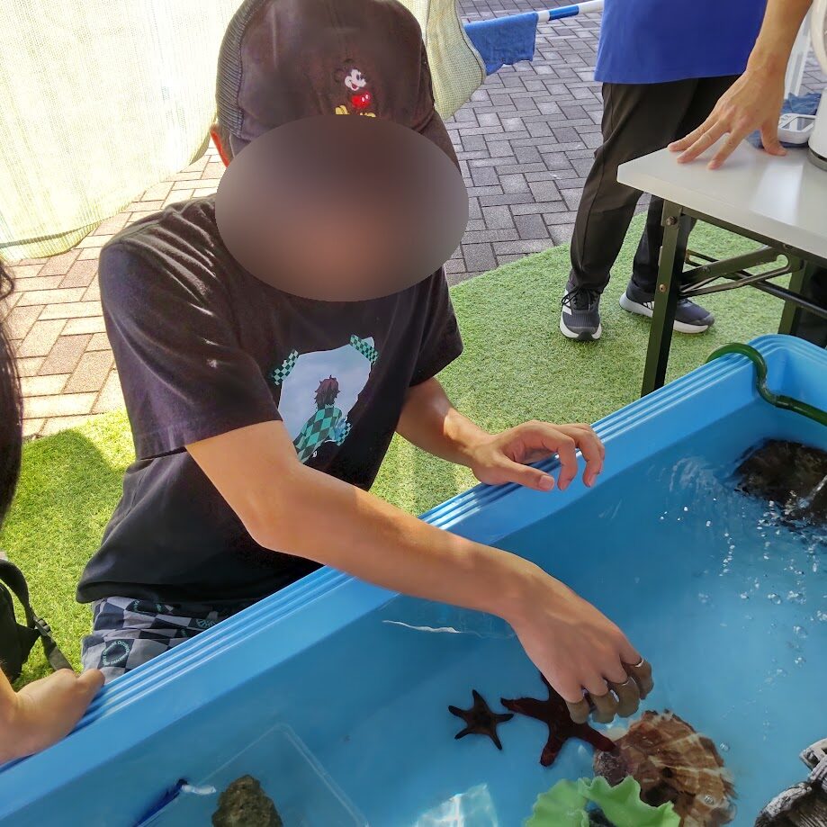 ヒトデやナマコ、ヤドカリなど実際に触ってみて、「こんな感触がするんだ!」「よくさわれるね!」と貴重な経験ができました✨