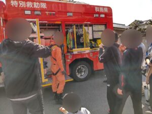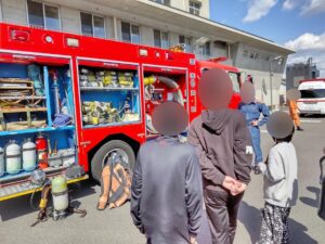 消防署の方も優しく答えてくれ、子ども達も嬉しそうでした。