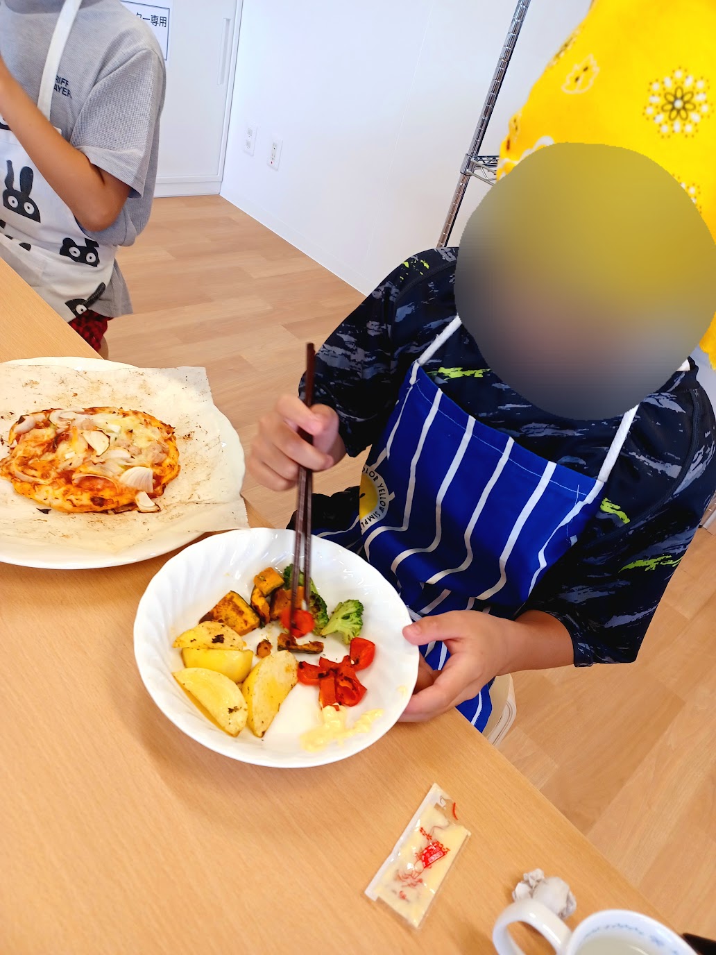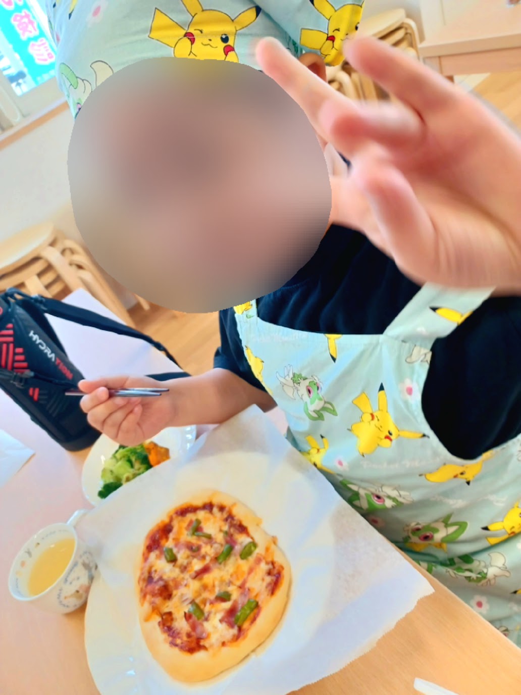 この日のメニューはピザ🍕サラダ🥗ゼリーです☺