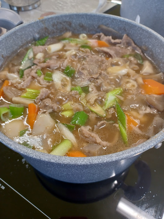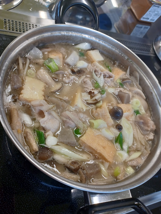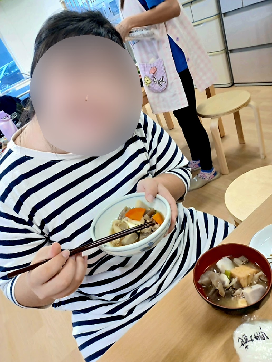 この日のメニューは芋煮🍲おにぎり🍙キュウリの一本漬けです。