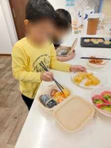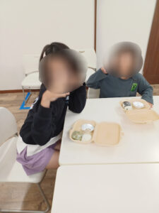 子ども達はパックにそれぞれ好きなおかずを詰め、出発を待ちます🚙