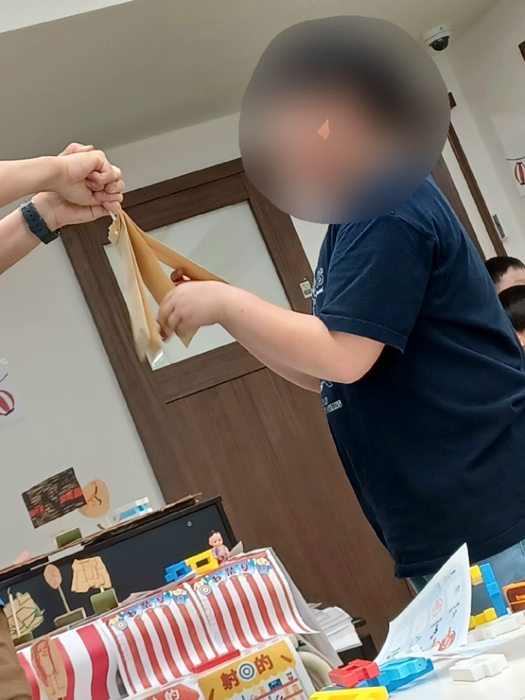 子どもたちは、朝から射的に使う的づくりです😄