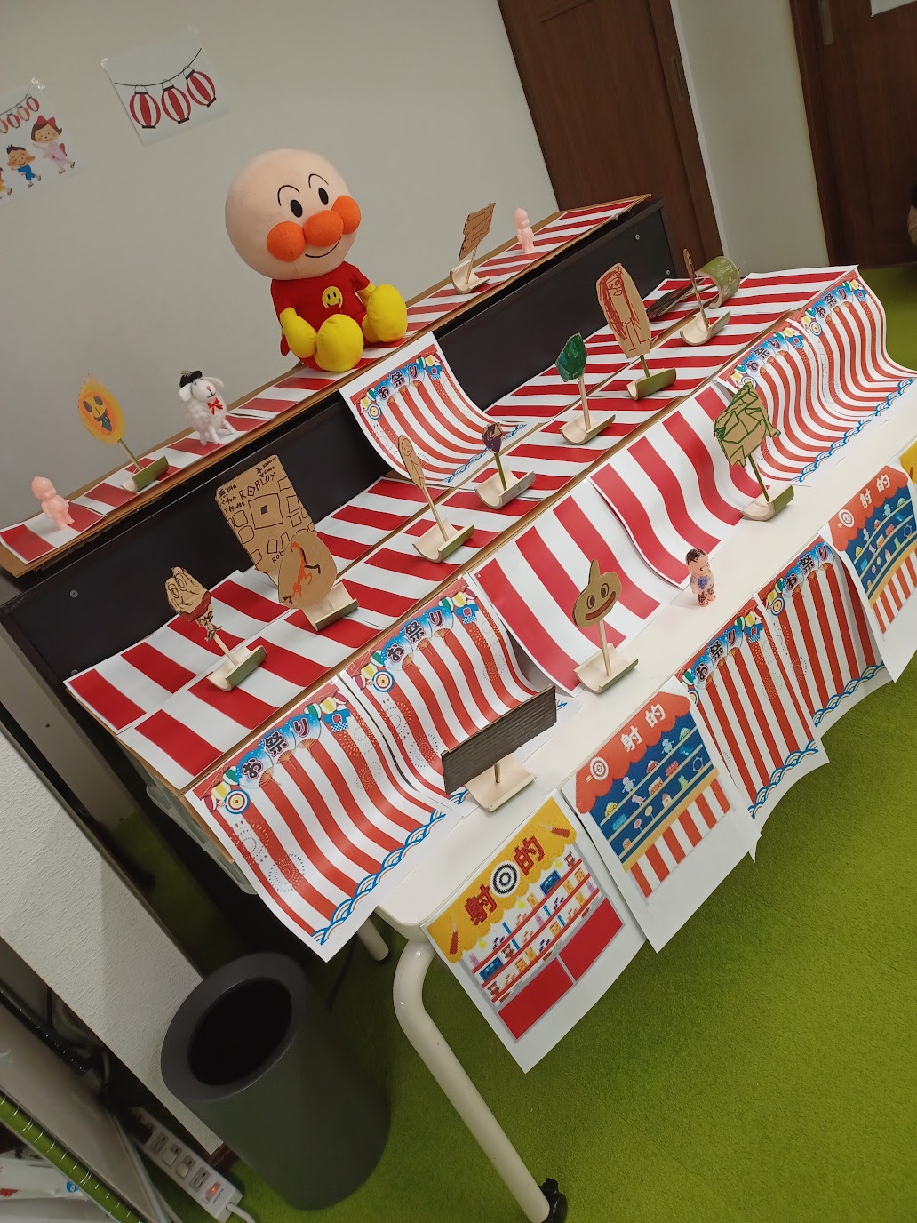 射的や魚つり・ふうせん・わなげ・・・そして職員手作り✋竹のけんだまコーナーもあり、スタンプをもらいながら