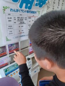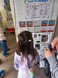自転車や芝滑りなど好きな乗り物を選び、自分たちでチケットを買いました。