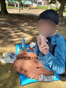 3月下旬にしては少し暑いくらいのぽかぽか陽気で、木陰でお弁当を食べました。