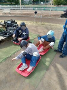 結構な高さがあり、みんな怖くないかな~??と心配していましたが、職員の心配もよそにでみんな楽しそうに滑っていました!