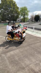 普段自転車に乗らないお友達も最初は恐る恐る挑戦していましたが、1周終わるころには笑顔に。