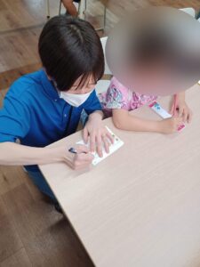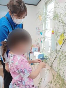 まずは、好きな紙を選び、お友達・職員とお話ししながら自分の願いを書いていきます。