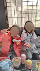 まずはお昼ごはん😋みんなで食べると美味しいね♪