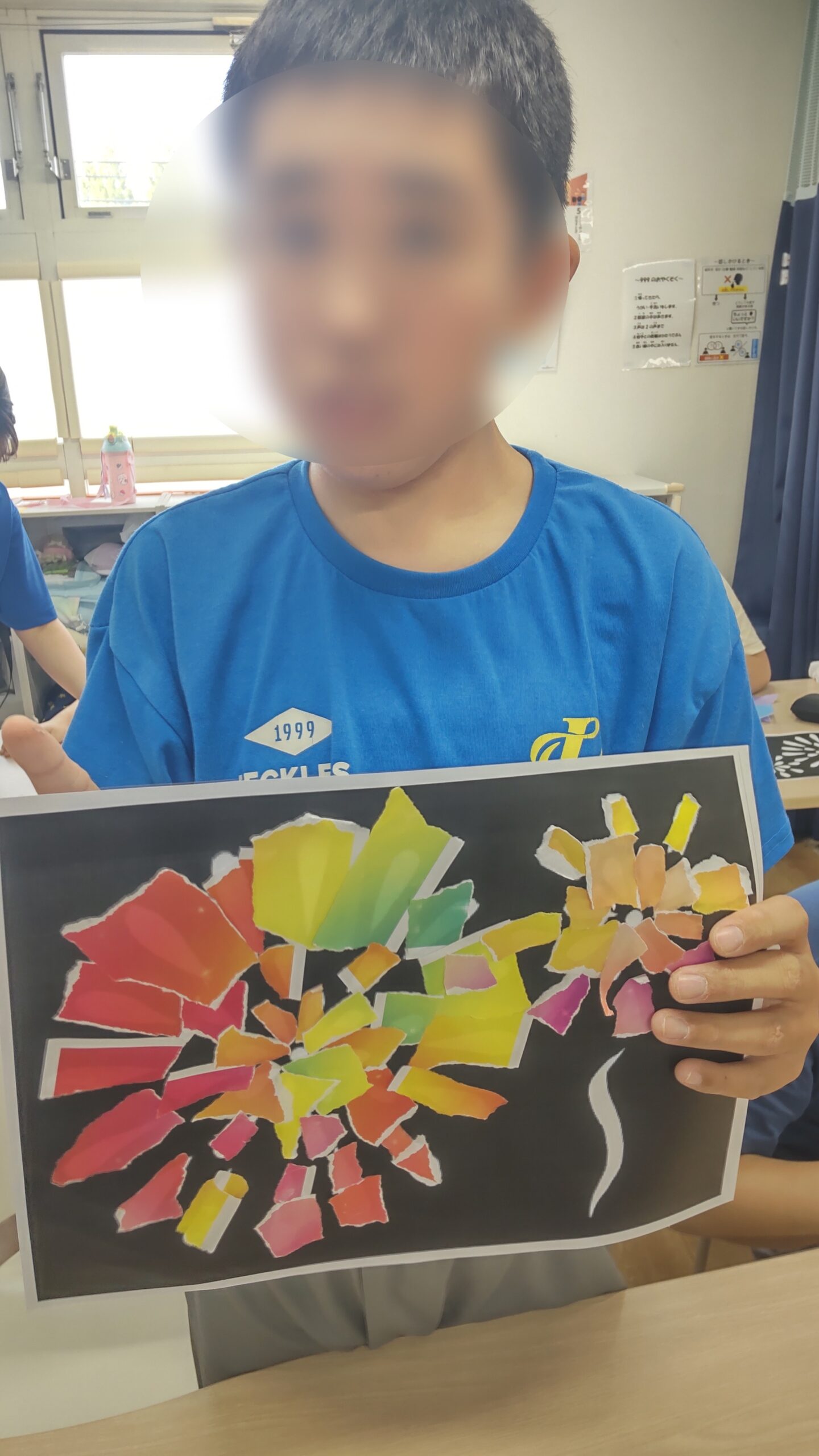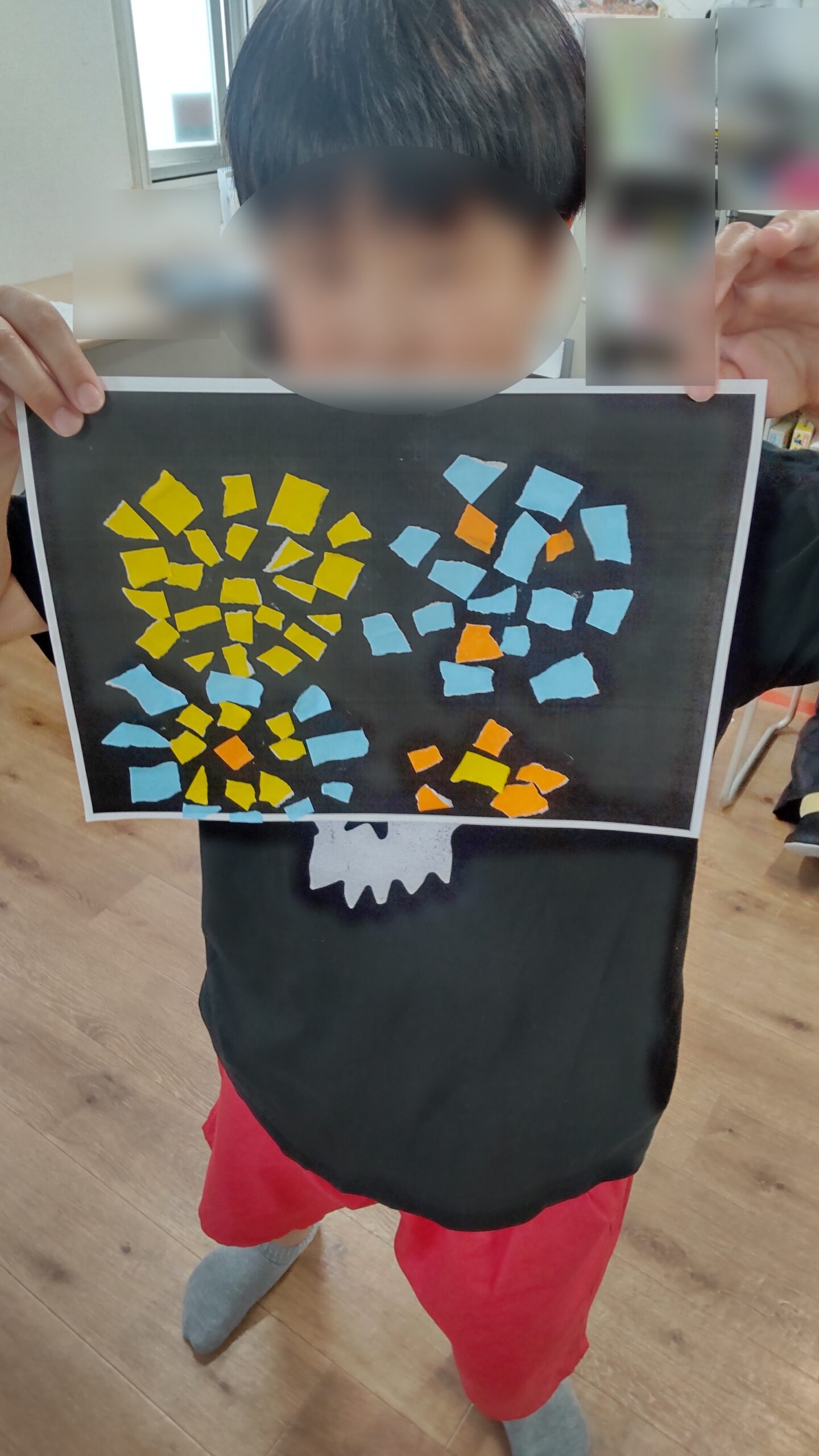 折り紙をちぎって夏の夜空にむけてペタペタ!