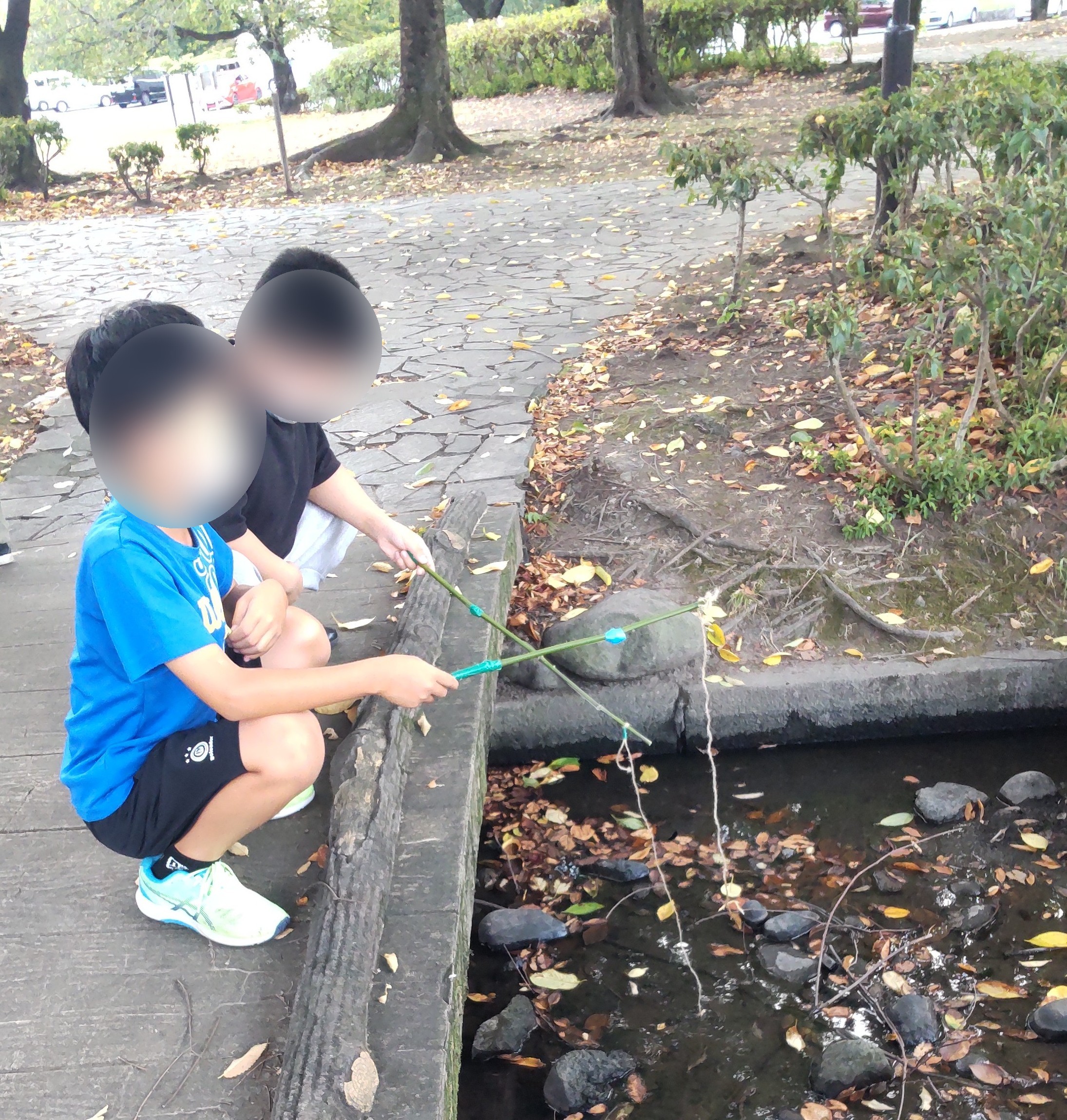 PMは、高崎市にある浜川運動公園にて“ザリガニ釣り”。