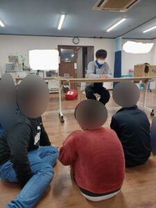 避難完了後は、そのまま避難訓練の振り返りを行いました。